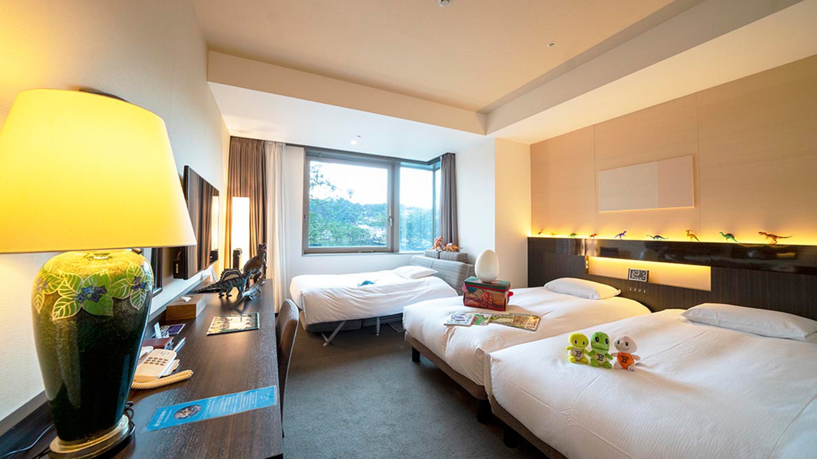 部屋の小物は「これでもか」というくらい恐竜だらけで楽しめます!