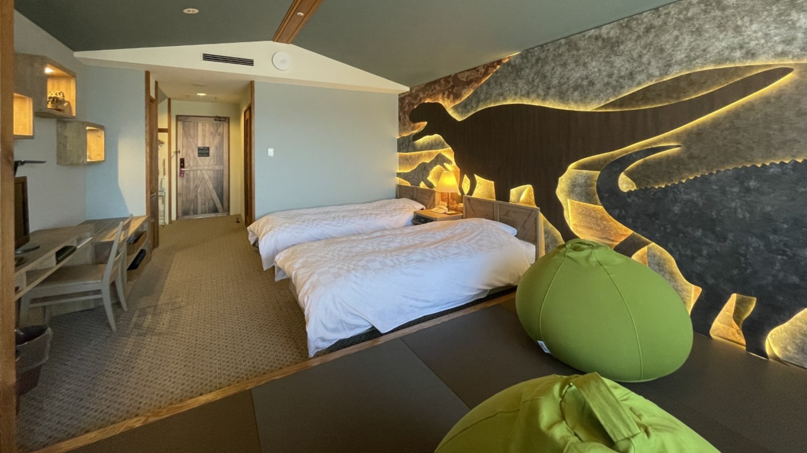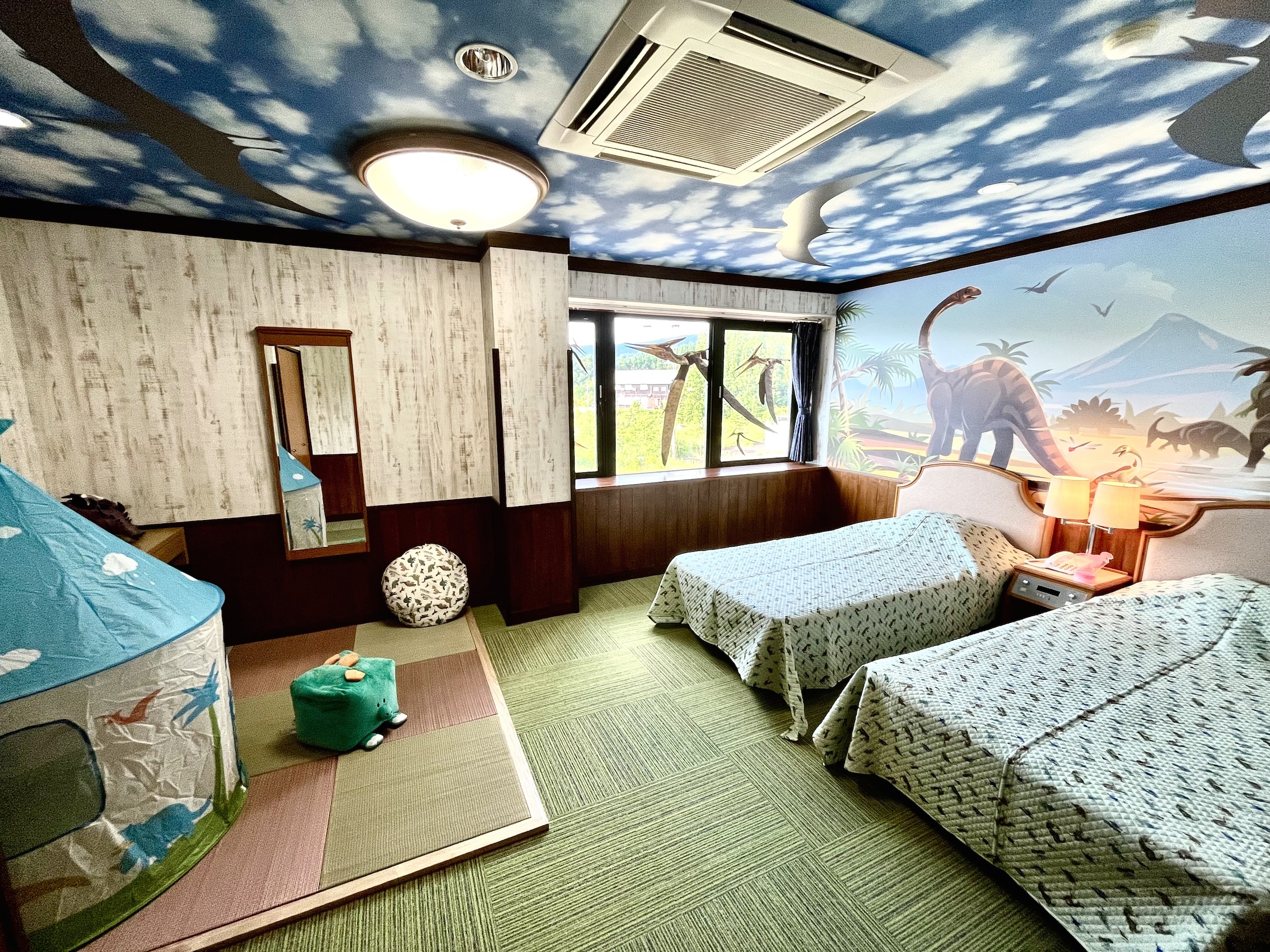 恐竜ルームはゆったりゴロゴロできる畳スペースがあり、子連れに嬉しいポイントです。