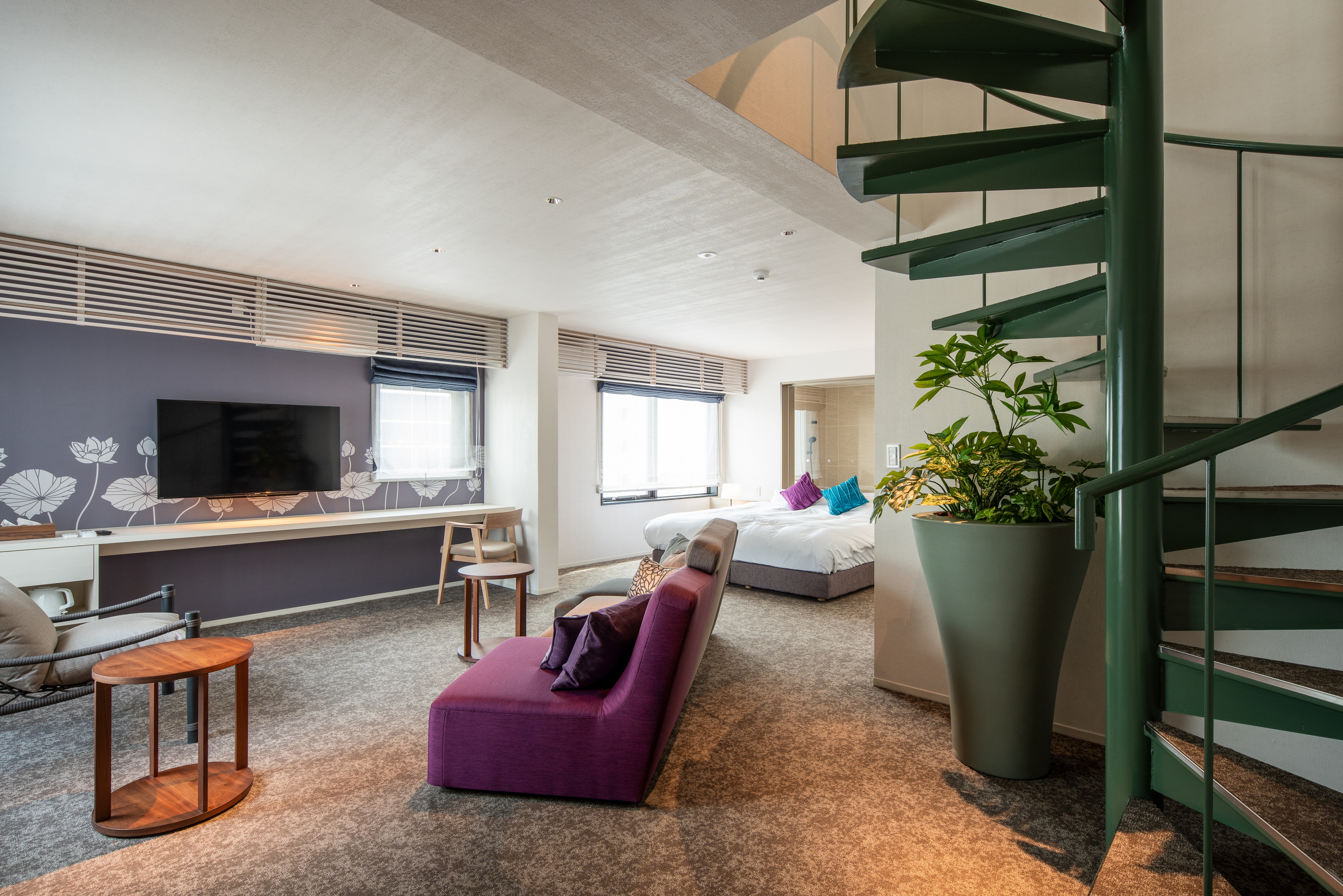 京都駅より車で10分、阪急大宮駅より徒歩6分に位置し、全室でデザインが異なるオシャレな空間のホテルです。
