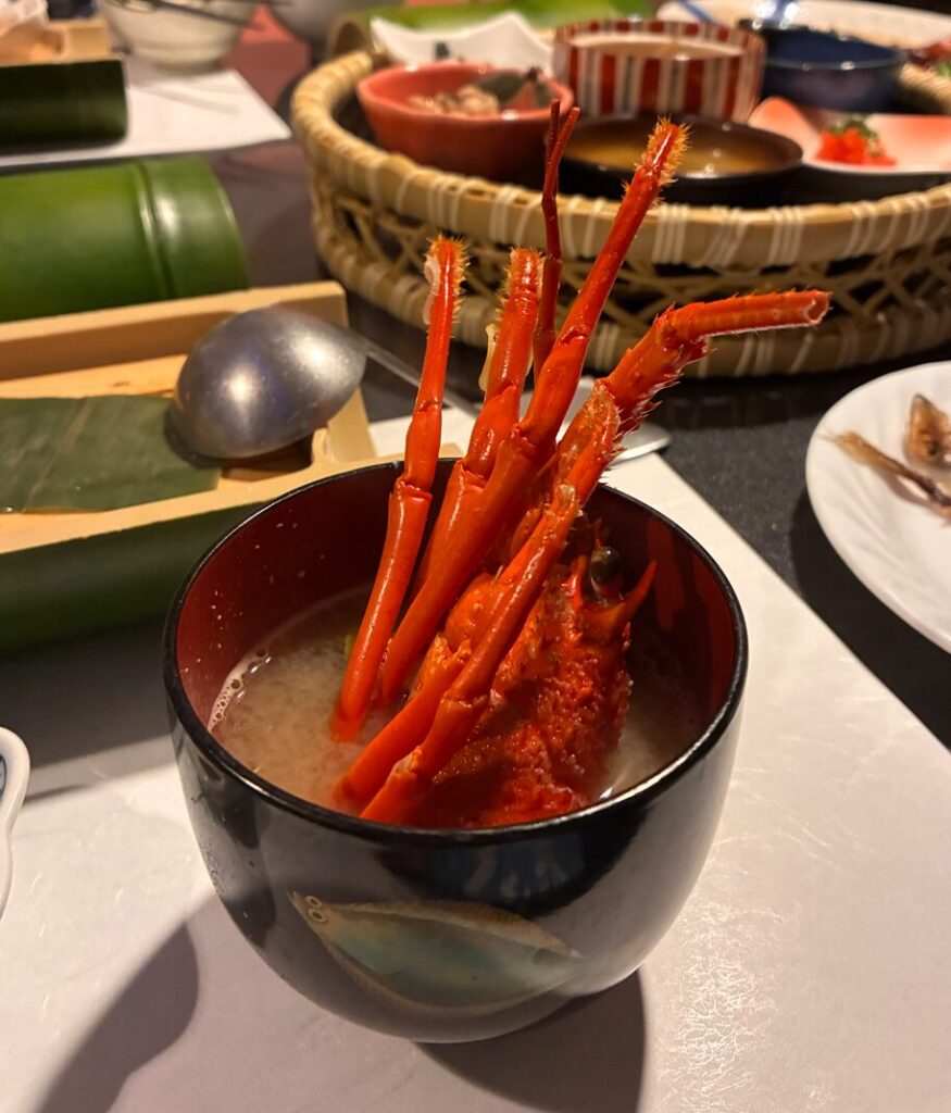 伊勢海老のお味噌汁初めて飲みましたが、出汁が濃厚で旨味が爆発していました。(本当美味しかった・・・)