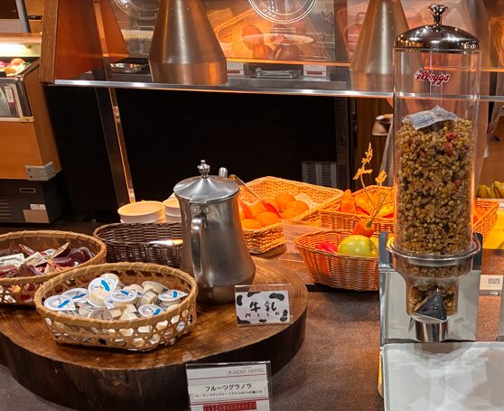 洋食派にも嬉しいスクランブルエッグやベーコン・ウインナーや、シリアルもありました。