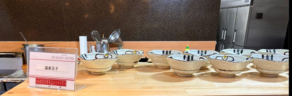 温泉卵はタレとセットで最初から小鉢に入っていていましたよ。トロトロでおいしい~!