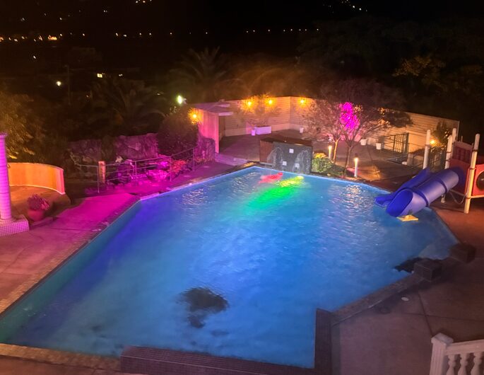 オマケの情報ですが、夜のプールがライトアップされていています。
