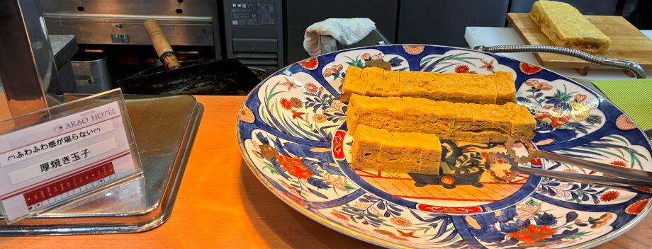 続いて食べた厚焼き玉子は、甘いタイプのフワフワ卵焼きでした。