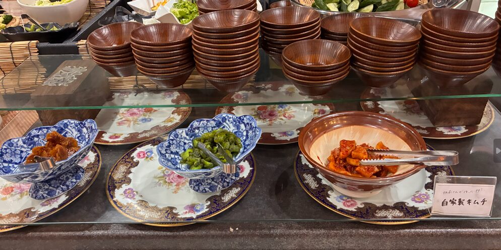 なぜか一つだけ手書きのPOPだったのが不思議でしたが、自家製キムチのラインアップも。ハーフビュッフェの品ぞろえが半端ないです。