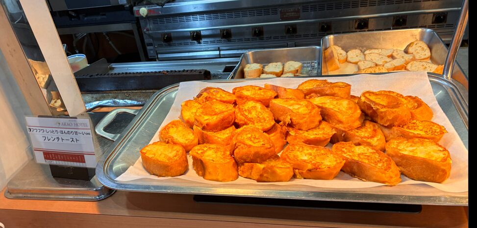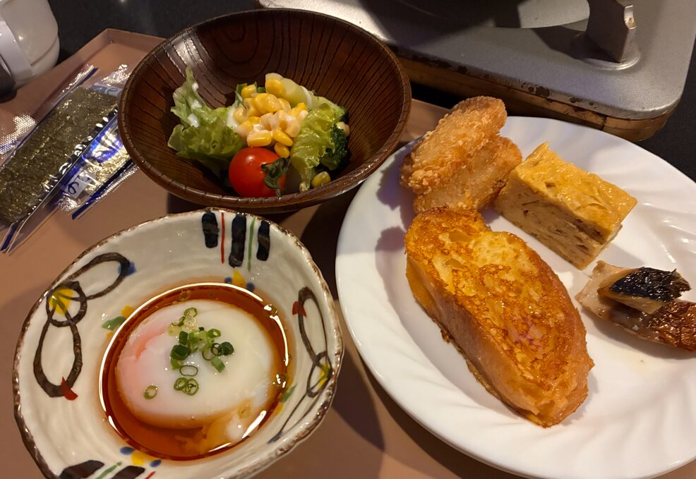 朝食にもハーフブッフェがついていたので、たくさん食べます!