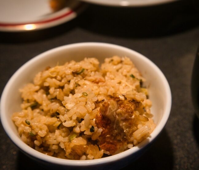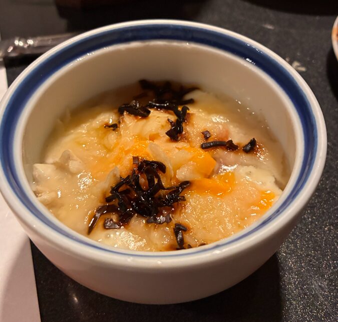 なんだそれ?と思いながら食べてみると、おこわの上に海鮮がゴロゴロ入っていて、2種類のチーズをのせて蒸した創作料理でした。魚介の旨みとチーズのバランスが抜群で美味。