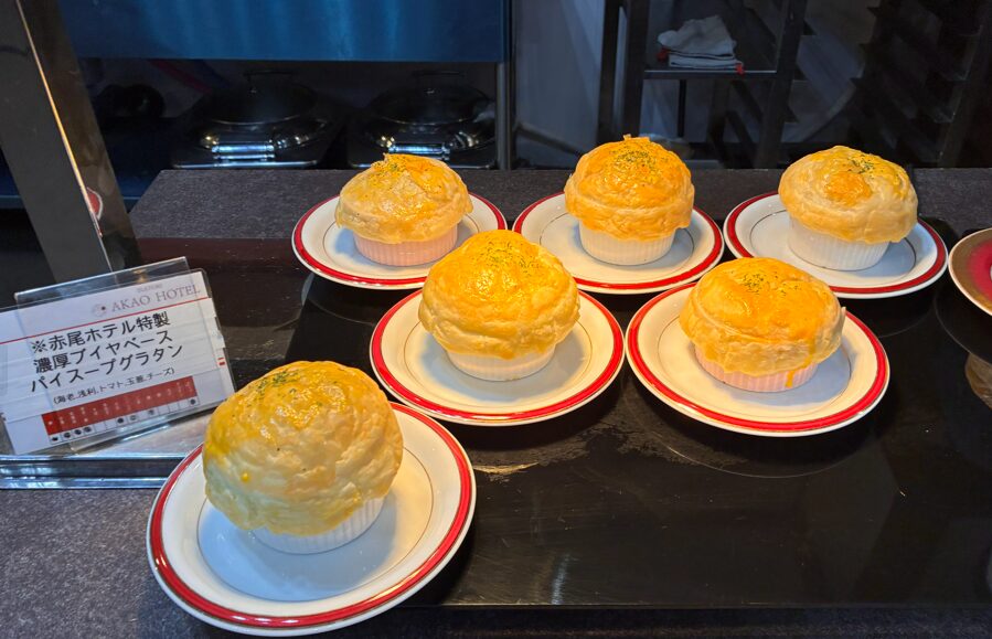 ハーフビュッフェで一際目を引いたものが「赤尾ホテル特製濃厚ブイヤベースパイスープグラタン」です。