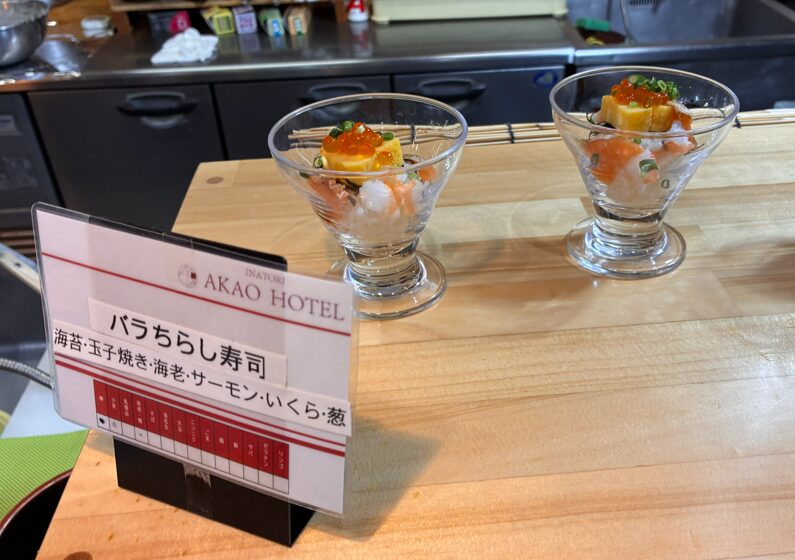 バラちらし寿司というミニお寿司パフェのようなメニューもありました。息子がいくらを喜んで食べていました。