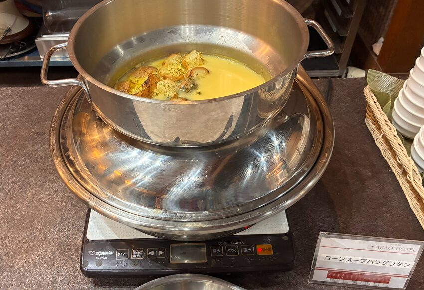 しかもこのコーンスープ、パングラタンが入っているんです。なんともリッチです。