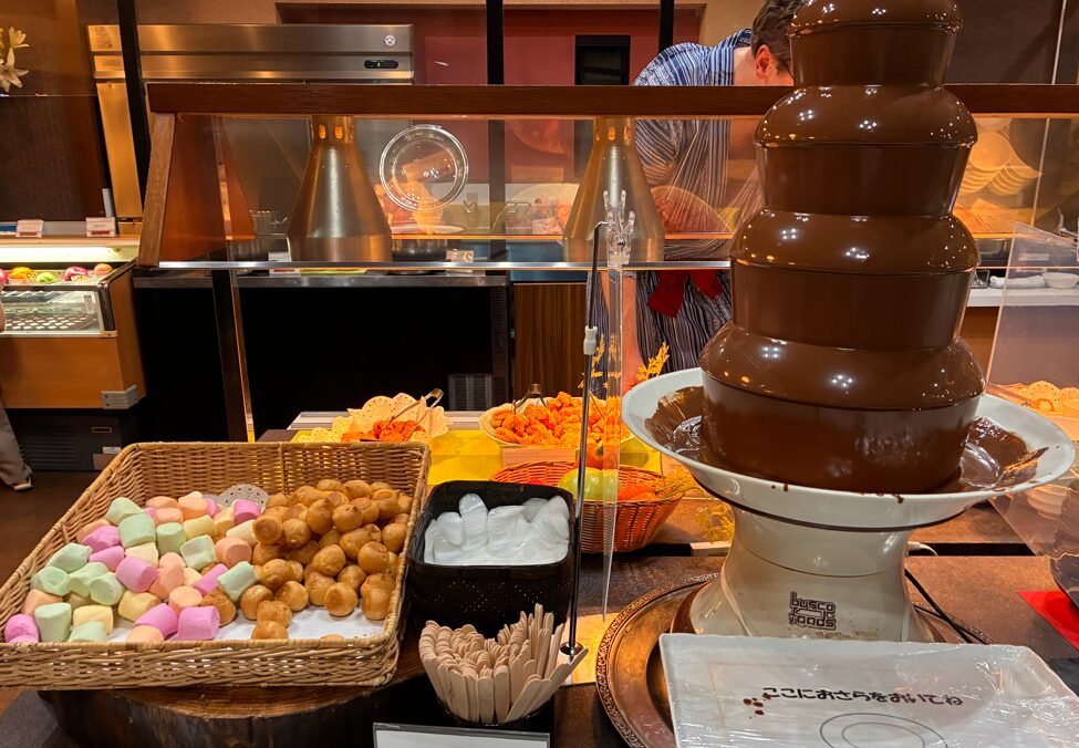 白玉ぜんざいやクリームブリュレ、パイナップルオレンジなどのデザートもありましたが、お腹がいっぱい過ぎてたどり着けずでした。