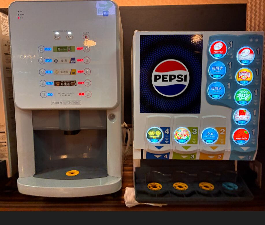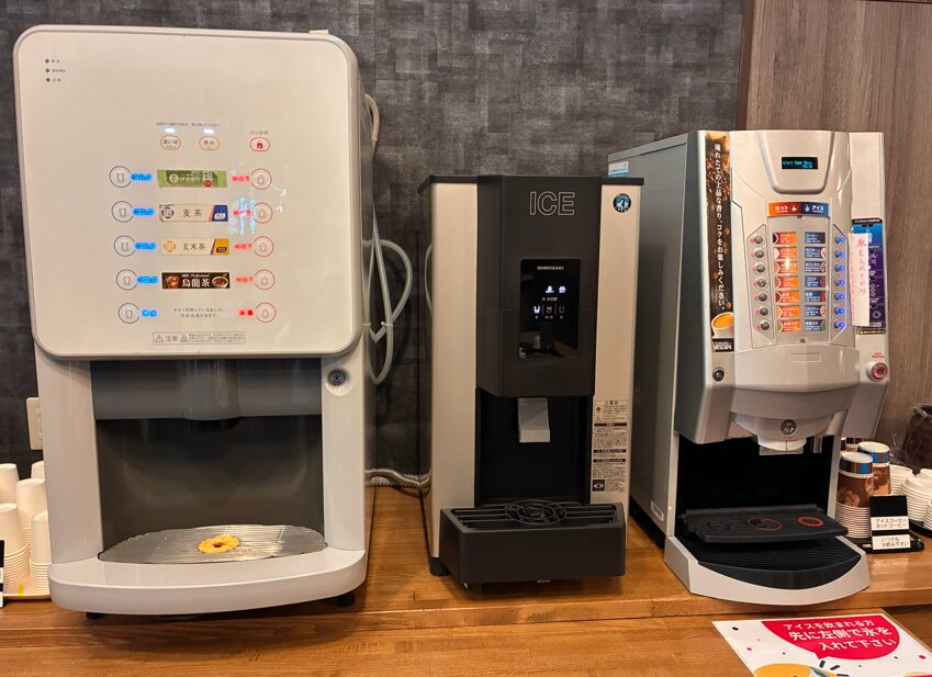 麦茶やコーヒー、ジュースマシーンは24時間フリーで頂くことができます。