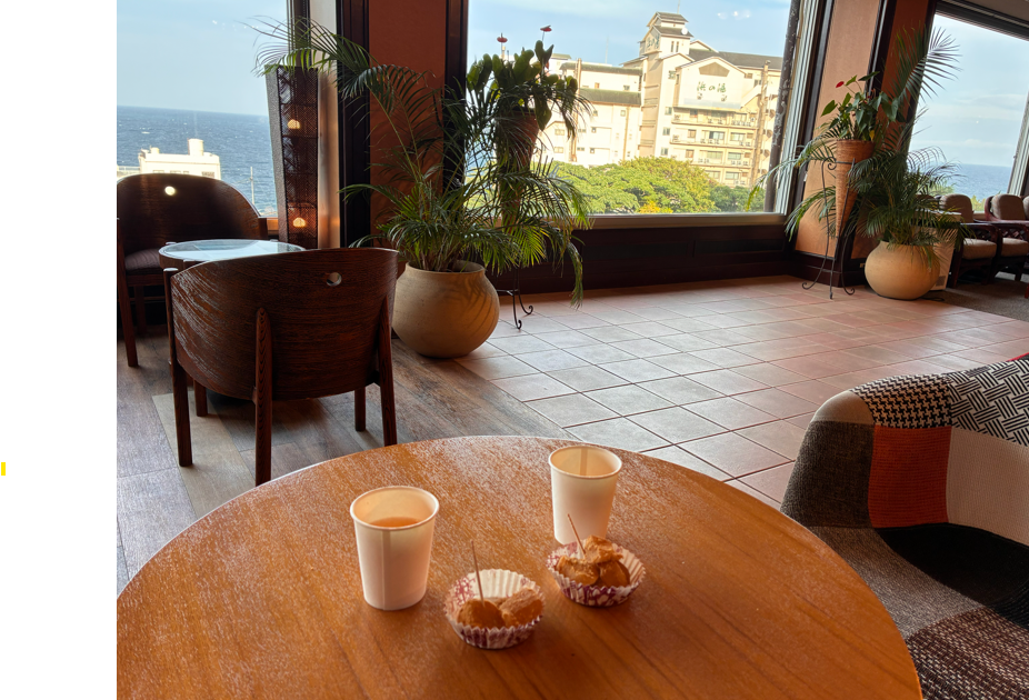 稲取赤尾ホテルは15:30~17:30の時間限定で、ウェルカムサービスと湯上りサービスをやっています。