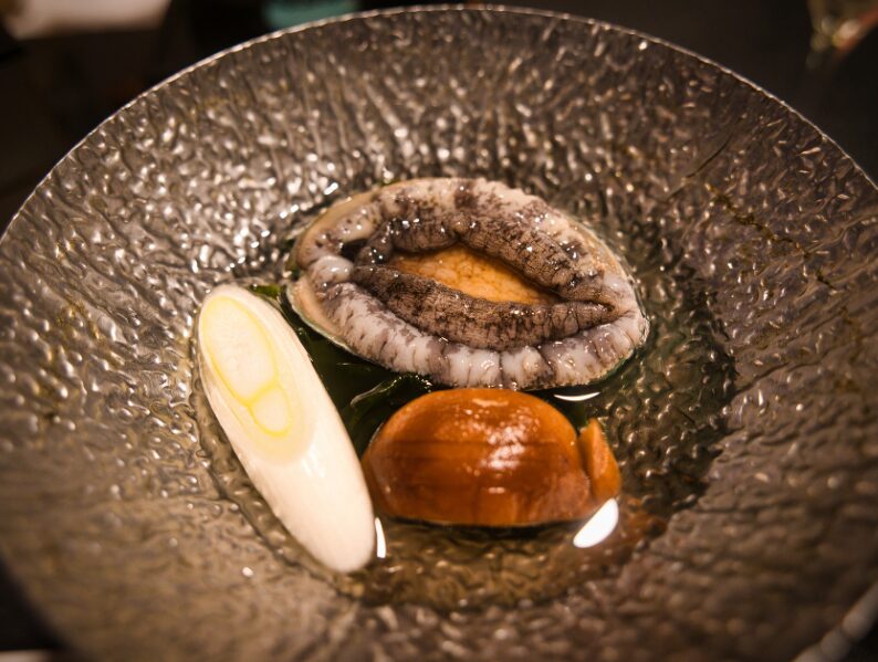 アワビもついていて、弾力の良い身が口の中で弾けます。美味しすぎて、出汁まで飲みました。