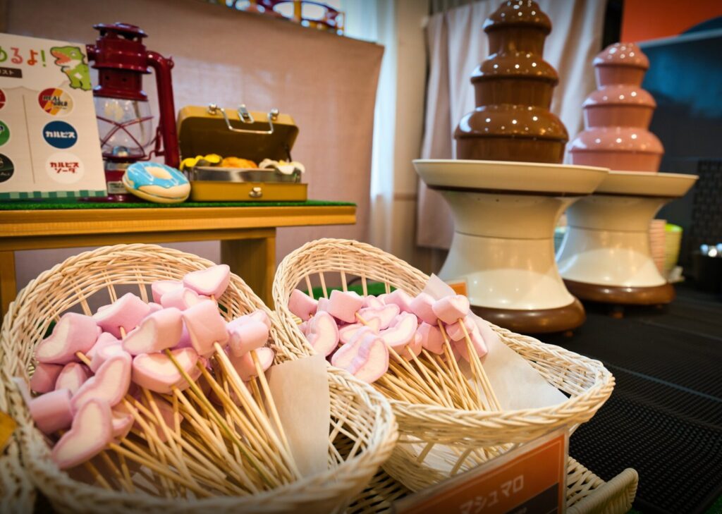 ハートのマシュマロにチョコをかけて、嬉しそうでした!