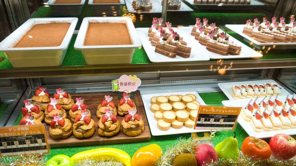 ショーケースに入ったデザートは、従業員さんがお皿に盛ってくれるスタイルでした。(1人2個)