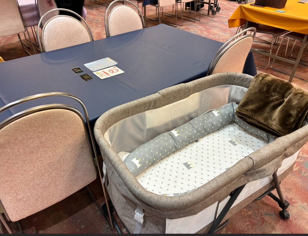 この写真のベットチェアは2台用意があるそうなので、赤ちゃんを寝転がせたい場合は、早めにレストランに入店するのがおすすめです。