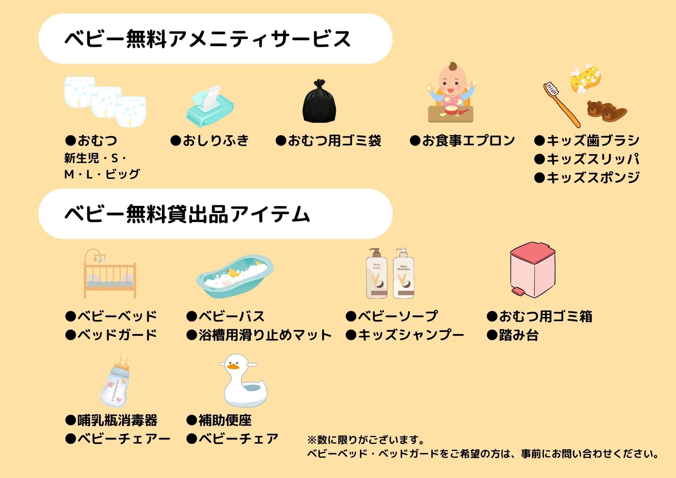 ミルトンや赤ちゃん用ボディーソープ、子ども用セパレートバジャマなの貸し出しは荷物を減らせるので助かりますよね。