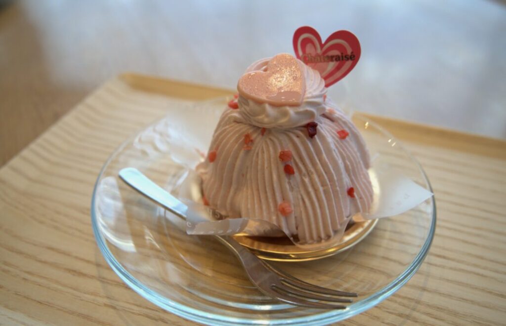 4歳の息子が選んだのは、苺ミルクモンブランです。(ボードに説明がなかったので、スタッフさんにケーキの種類を聞きました。)