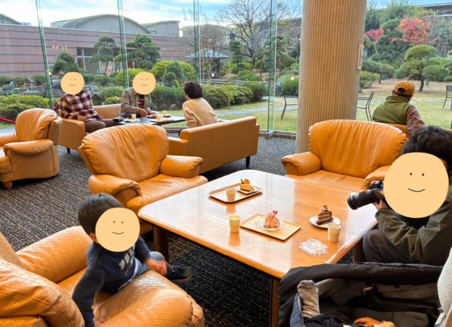 広々とした吹き抜けのロビーで日本庭園を見ながらいただくケーキは想像以上の満足度でした!
