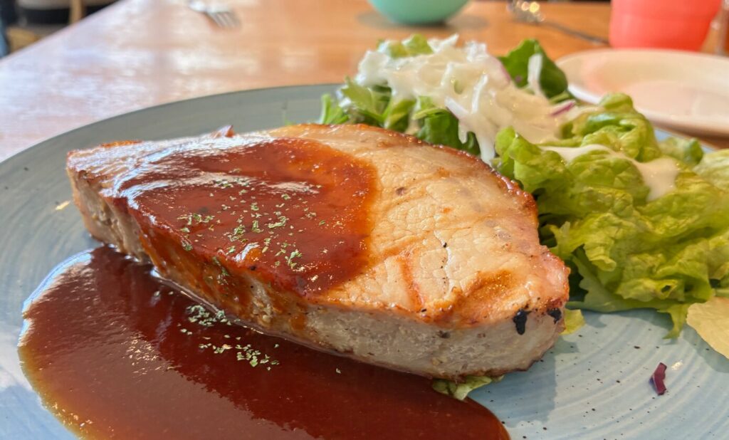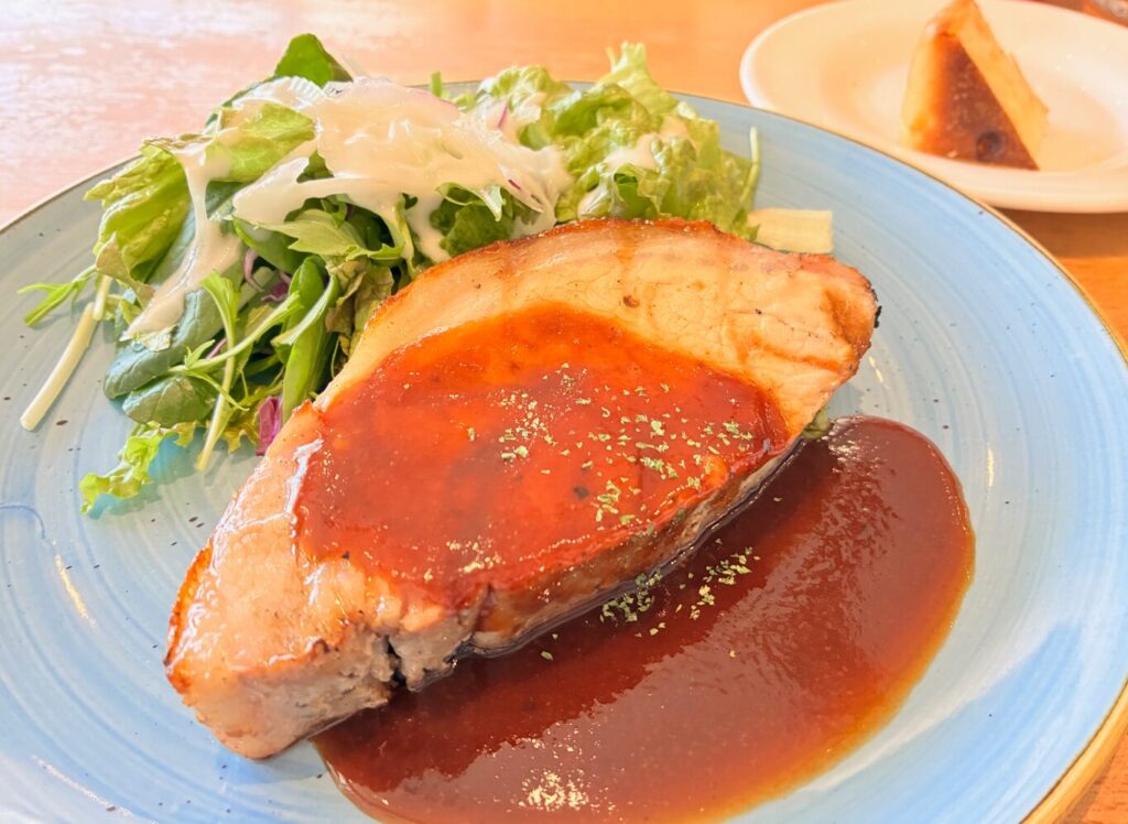 メインデッシュは、牛ステーキやポークステーキ、チキンステーキなどのお肉類やサラダデッシュなどがありました。