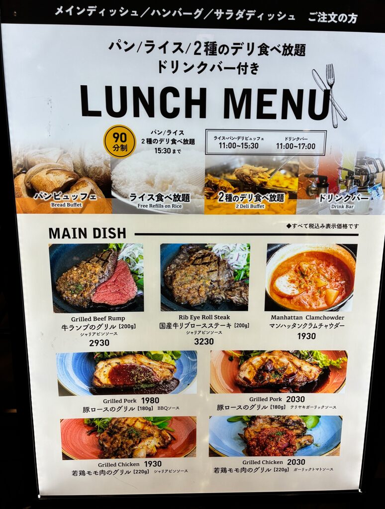 こちらのレストランの平日ランチはすべてのメニューに、「メインデッシュ」+「パンビュッフェ」+「ライス食べ放題」+「2種類のデリ」+「ドリンクバー」がついてくるシステムでした。