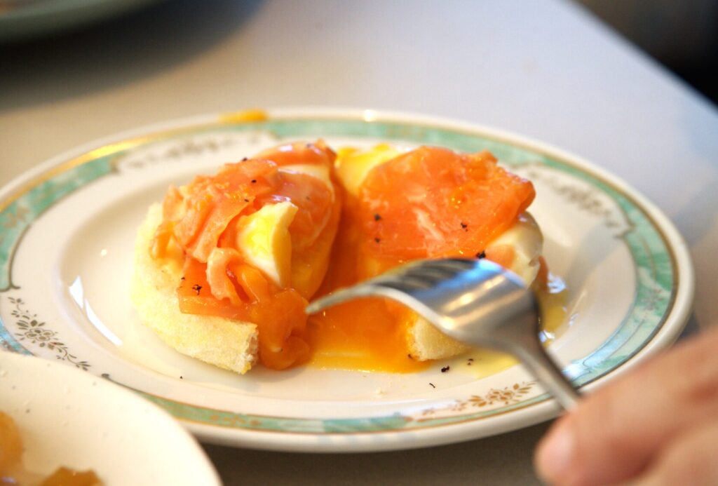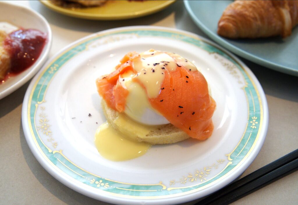 ライブキッチンのサーモンエッグベネディクトです。濃厚なソースにサーモンのフレッシュさが美味しいです。