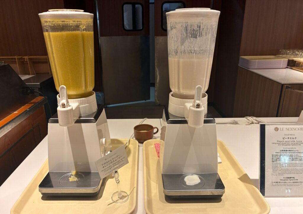 アボカドとマンゴー&オレンジのスムージーと、山梨県産の桃ビューレを使ったピーチミルクがありました。