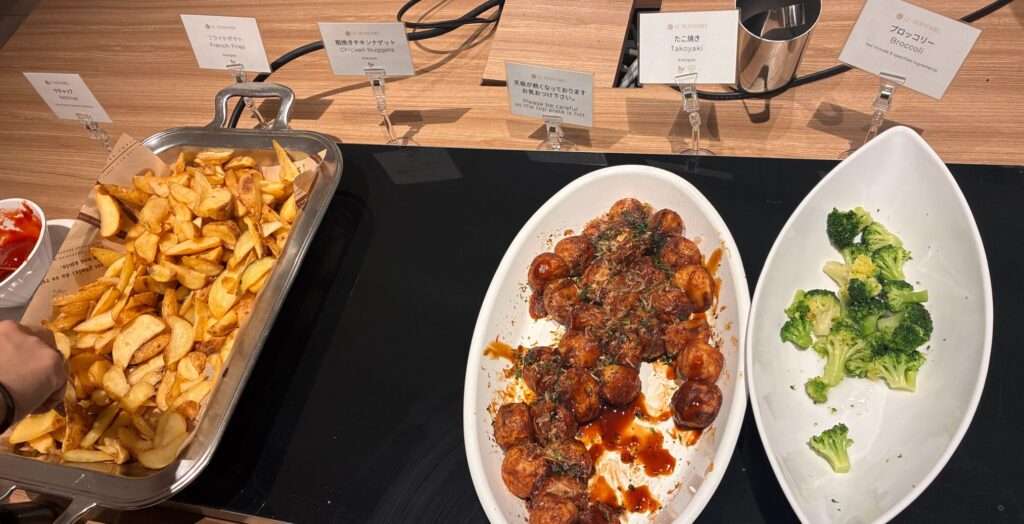 フライドポテトやたこ焼き、ブロッコリーが並べられていましたよ。