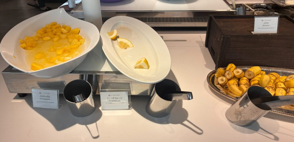 朝のビタミン補充に最適なパイナップル、グレープフルーツ、バナナもありましたよ。