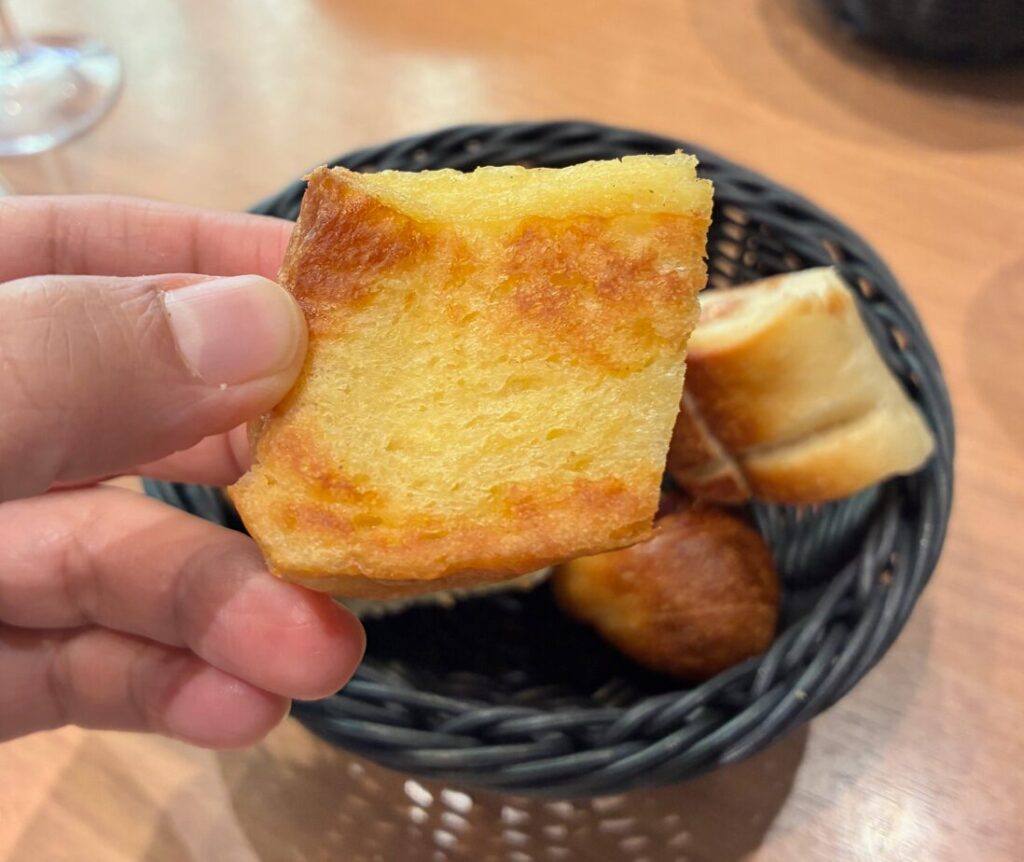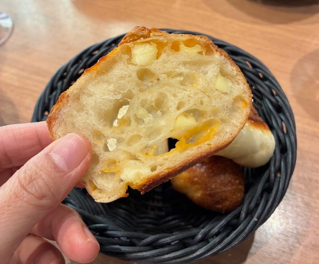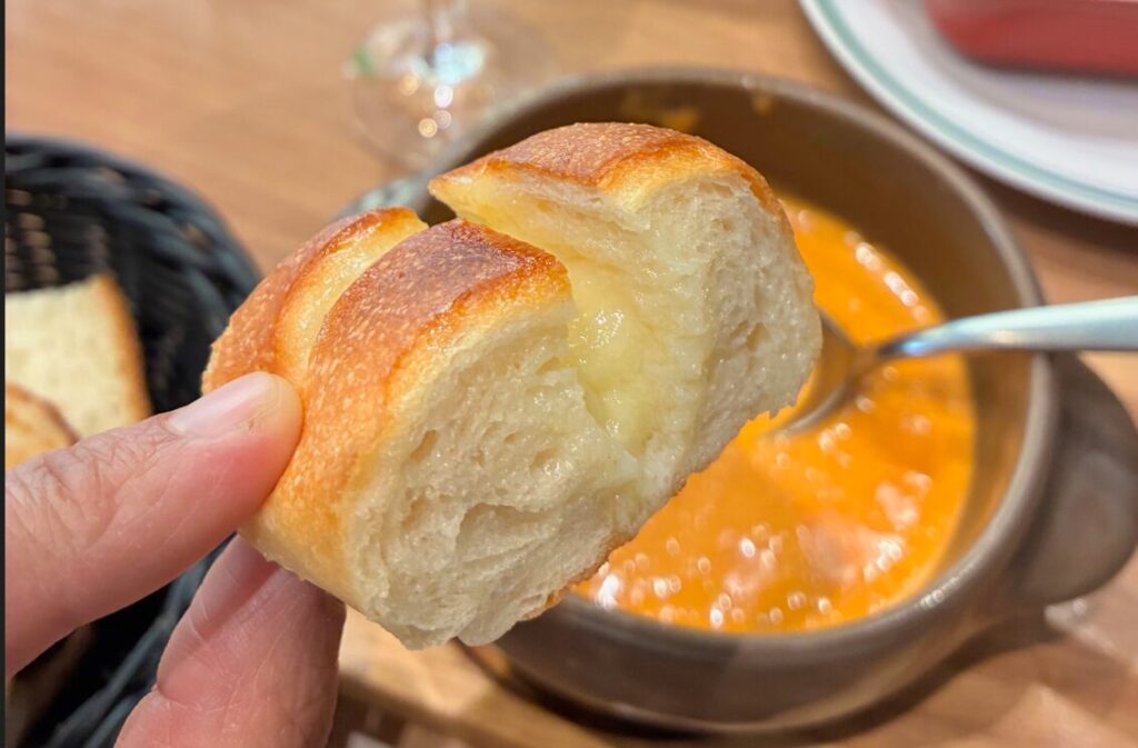 2種のチーズを使ったフランスパンはむぎゅっとしていて、スープによく合いました。