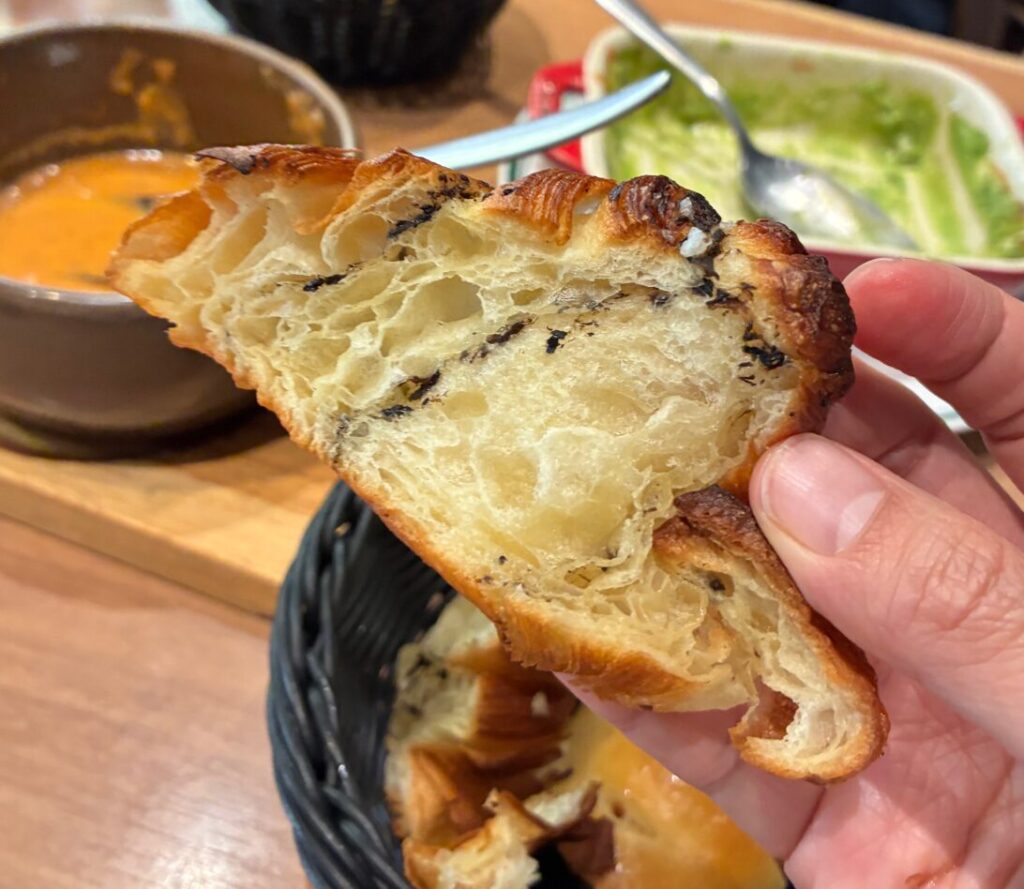 併設ベーカリーの中でも人気のあるパンだそうで、トリュフの香り高く、フワフワのクロワッサンが最高でした。