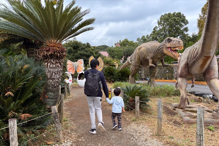 3歳の息子は最初興奮してみていたのですが、恐竜が動く&鳴き声に気づいてから態度が一変。ビビりながら歩いていました(笑)