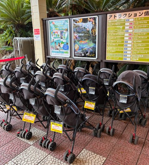 我が家は平日に訪れたので昼過ぎでもベビーカーがずらりと並んでいましたが、従業員の方に聞いたら土日はすべて貸し出になるそうです。