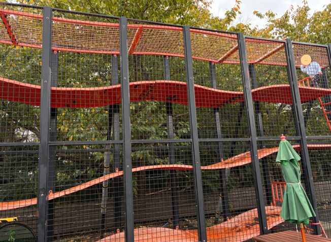 走り回ったりハシゴを上ったりできる網で囲われた遊具もありました。