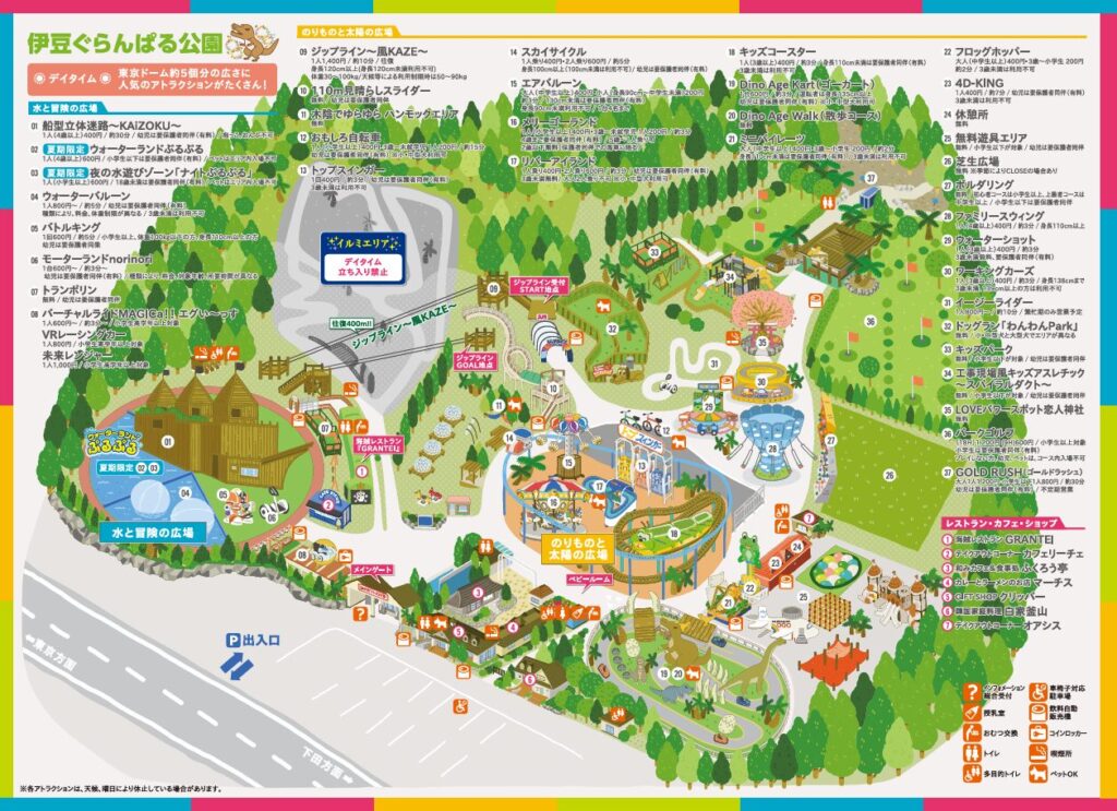 伊豆ぐらんぱる公園は「公園」と名前がついていますが、ジェットコースターやゴーカートなどを楽しめる遊園地+大型公園が合体したような施設です。