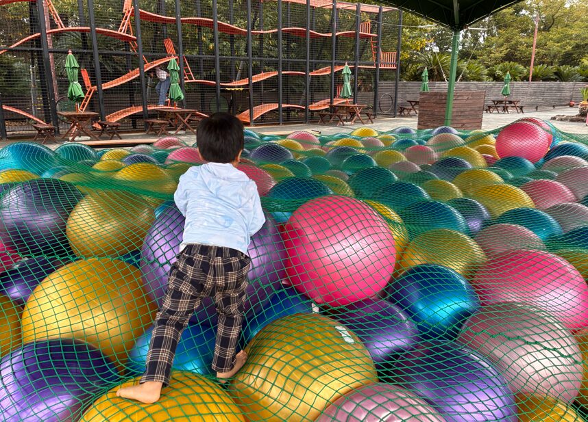 遊具が集合したエリアには、大きなボールが敷き詰められた遊具もありました。