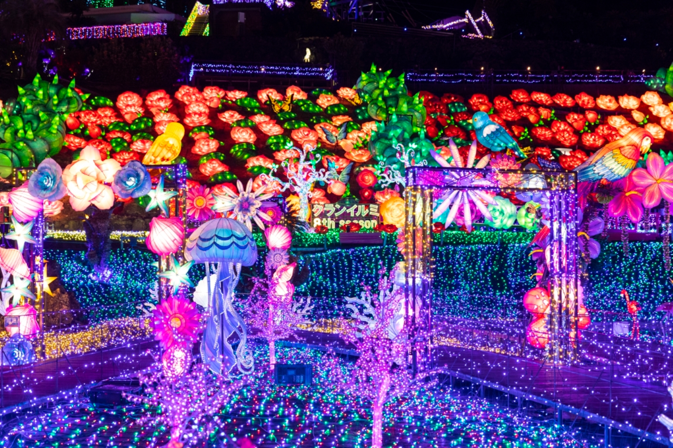 さらに、昼間はアトラクションや遊園地施設を、夜は幻想的なイルミネーションを楽しめるテーマパークとなっています。
