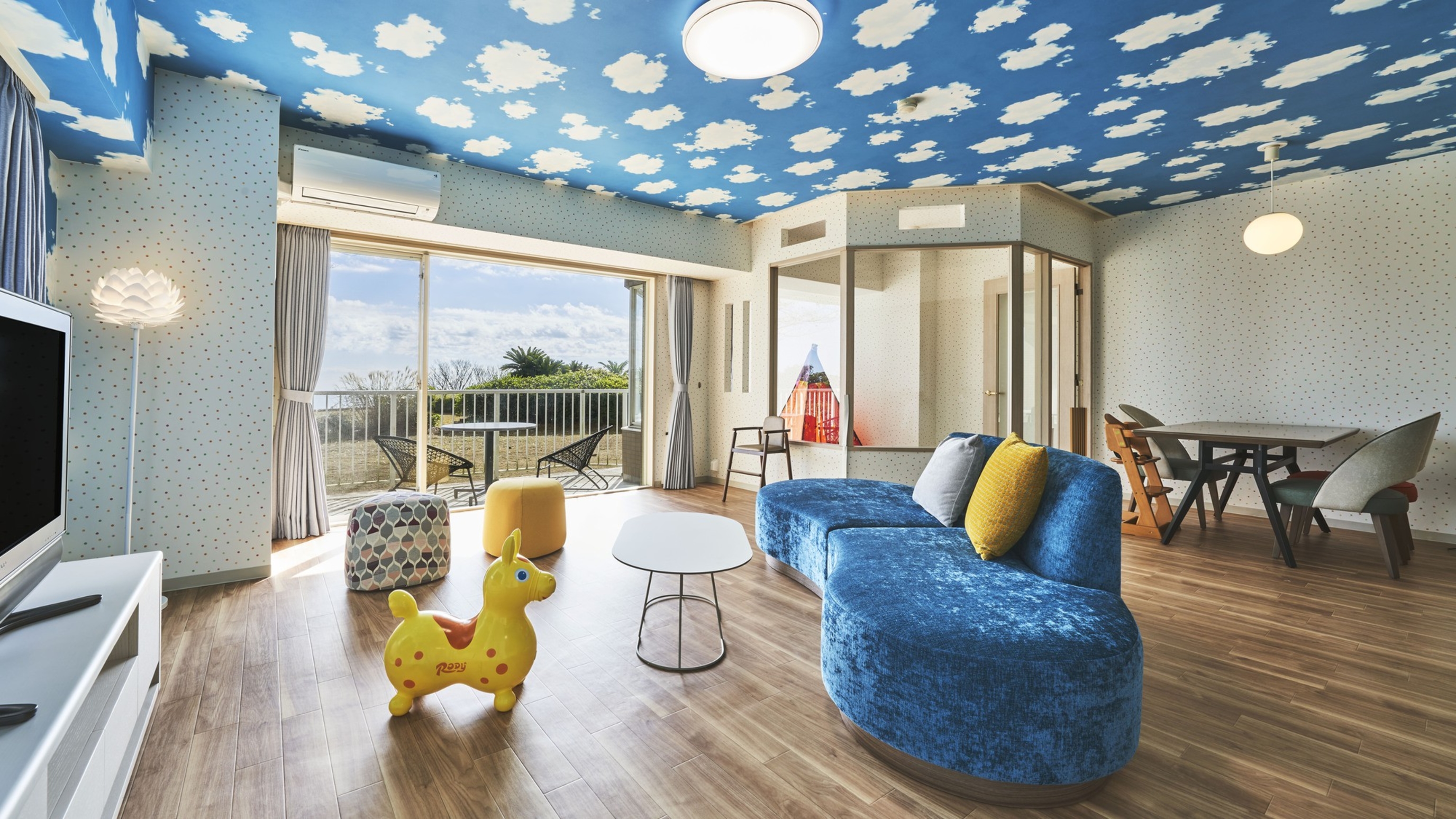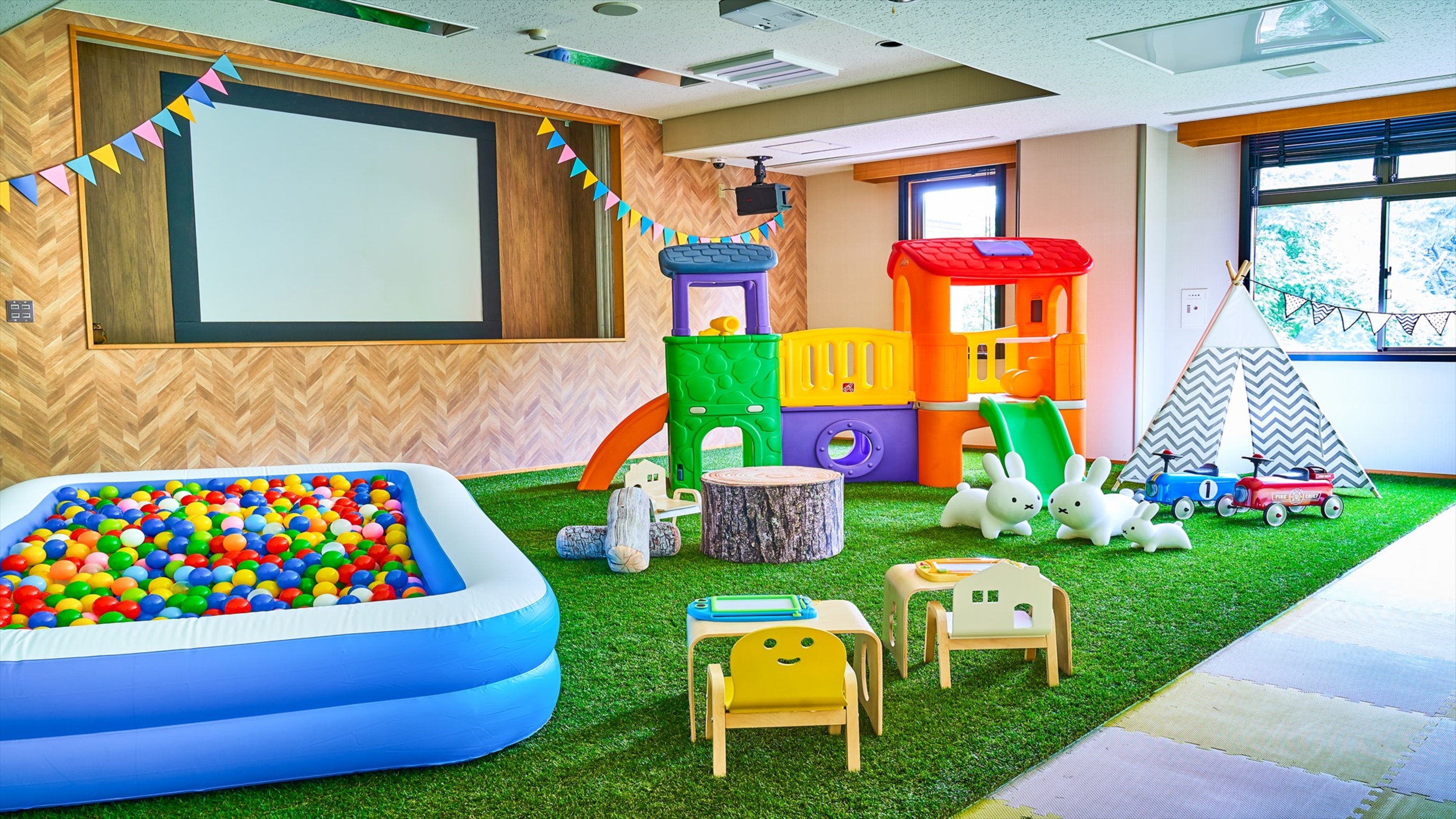 ホテル&スパ アンダリゾート伊豆高原は、子ども特化宿のアンダシリーズで、キッズスペースやカラオケなど無料で使える施設が充実しており、まさに子連れの楽園です。