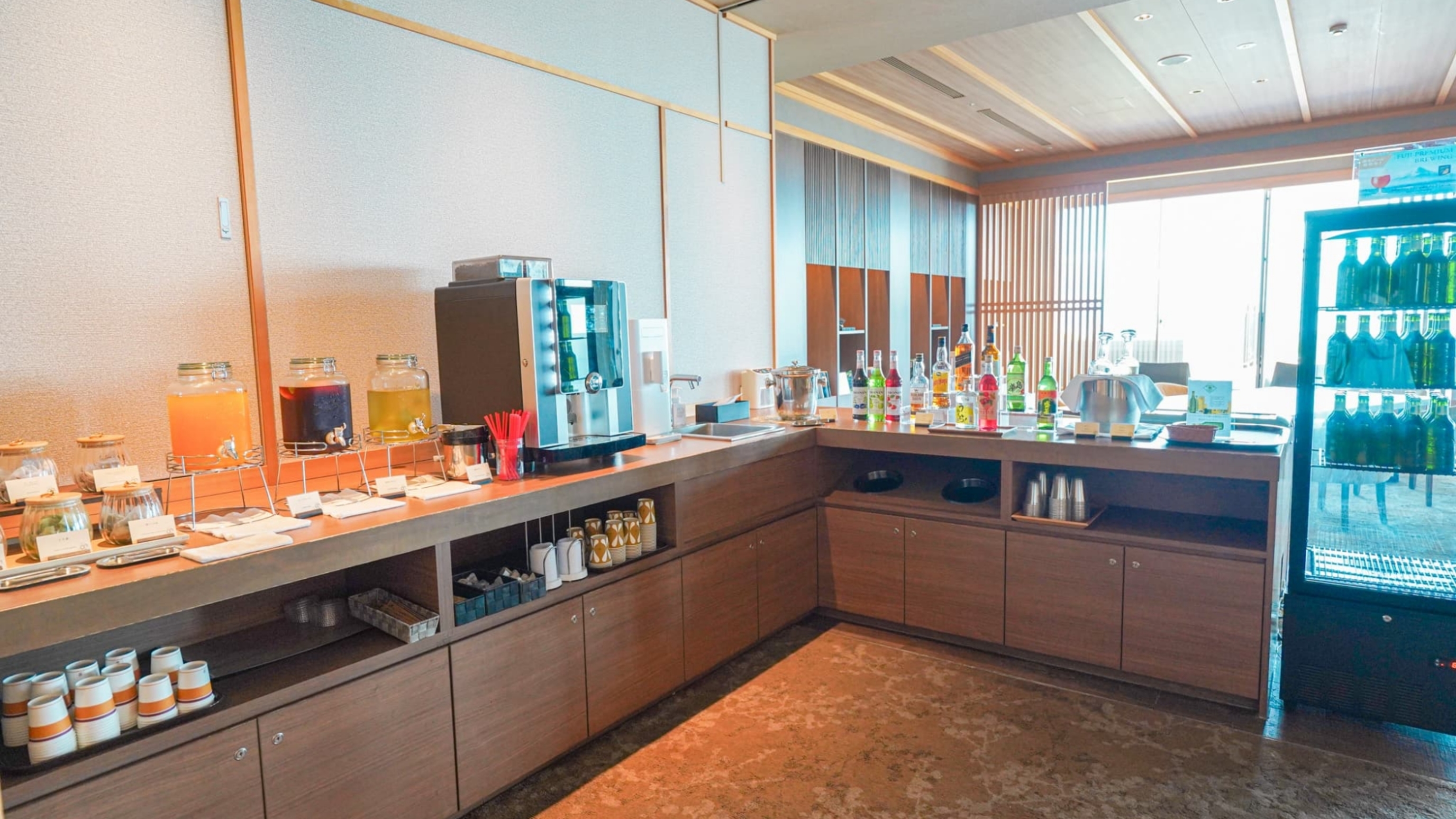 ✓フロントで、ソフトドリンクやアルコールが無料飲み放題