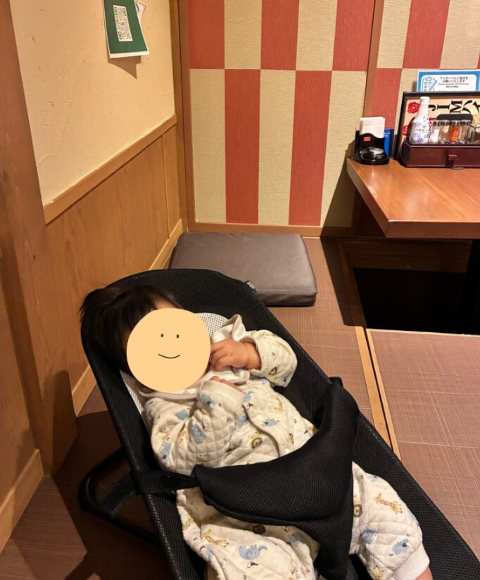座敷に通してもらったら、店員さんが慣れた様子で「バウンサー使いますか?」と聞いてくださいました