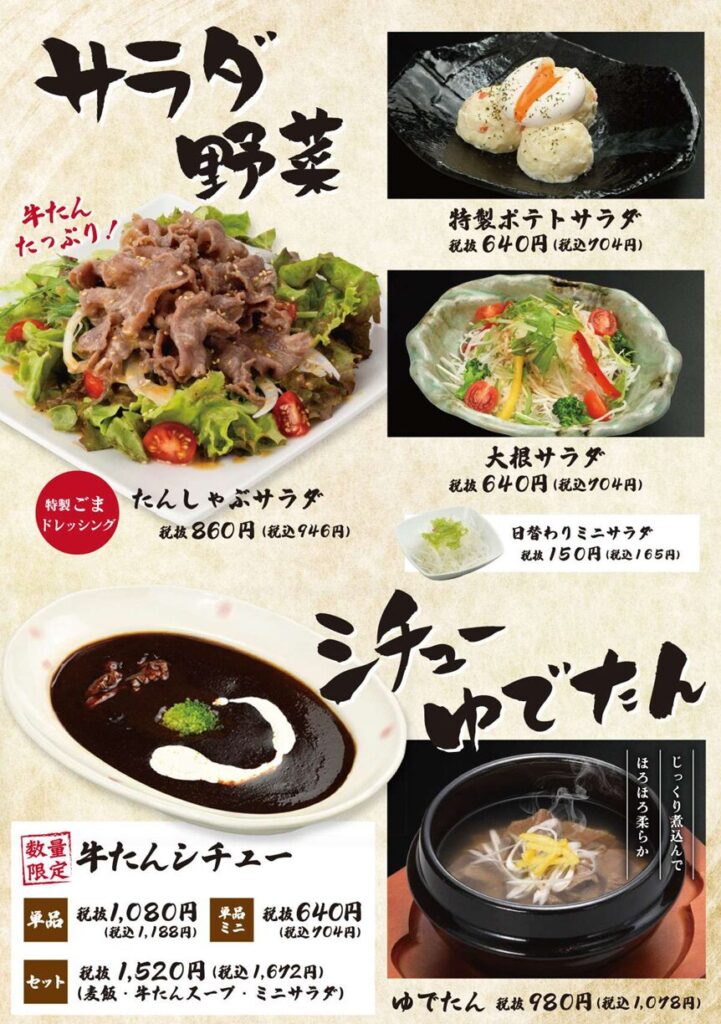 1品料理の牛タンシチューも追加で注文しましたが、コクと旨みが美味しかったです!