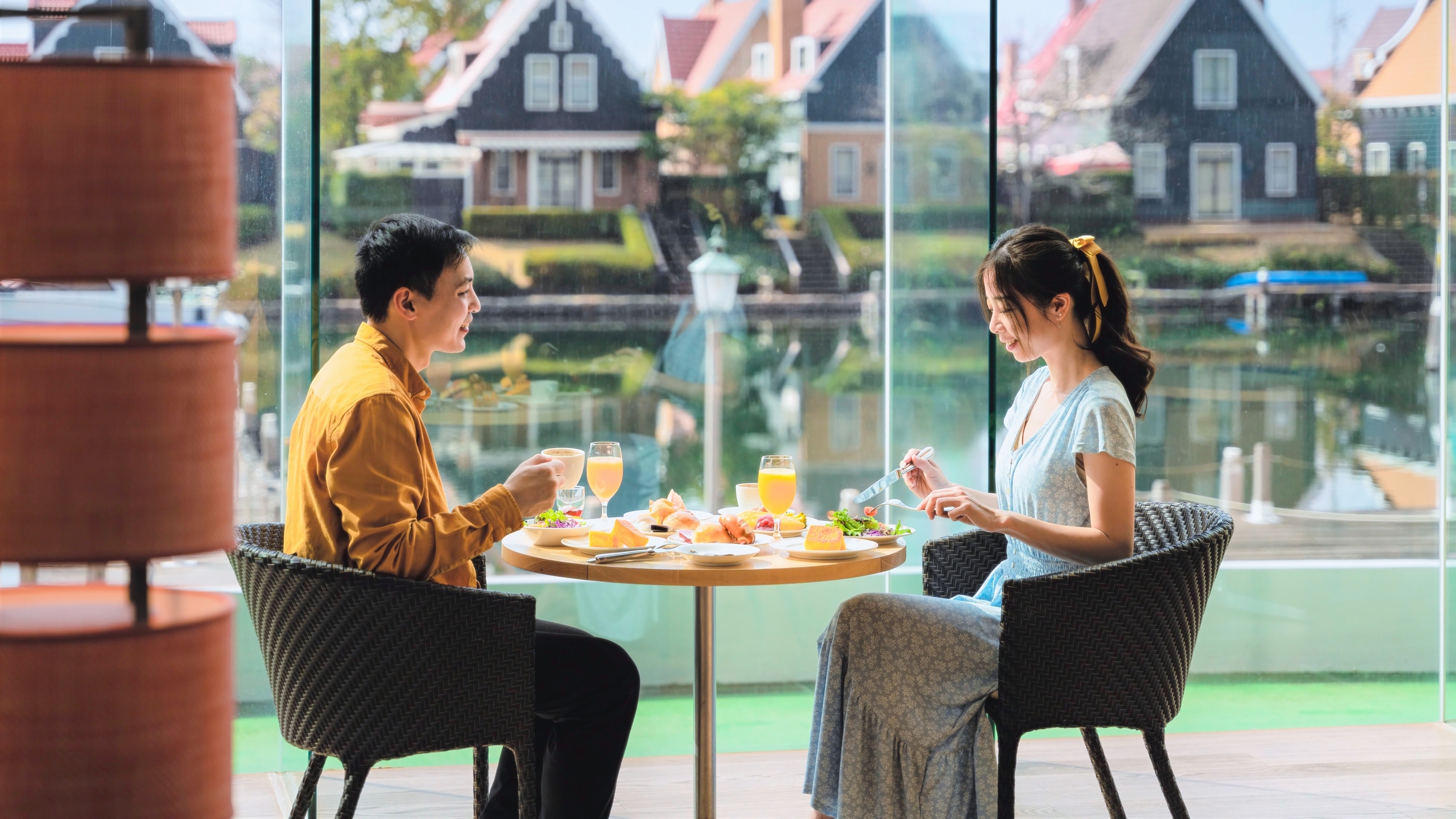 このホテルではハウステンボスの街並みを眺めながら優雅な朝を楽しむこともできますよ。