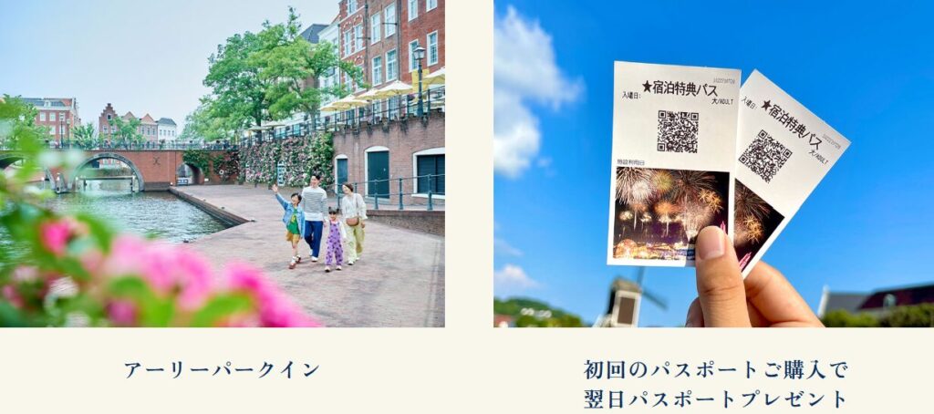 ハウステンボス公式ホテルに泊まると、宿泊者特典を受けることができます。