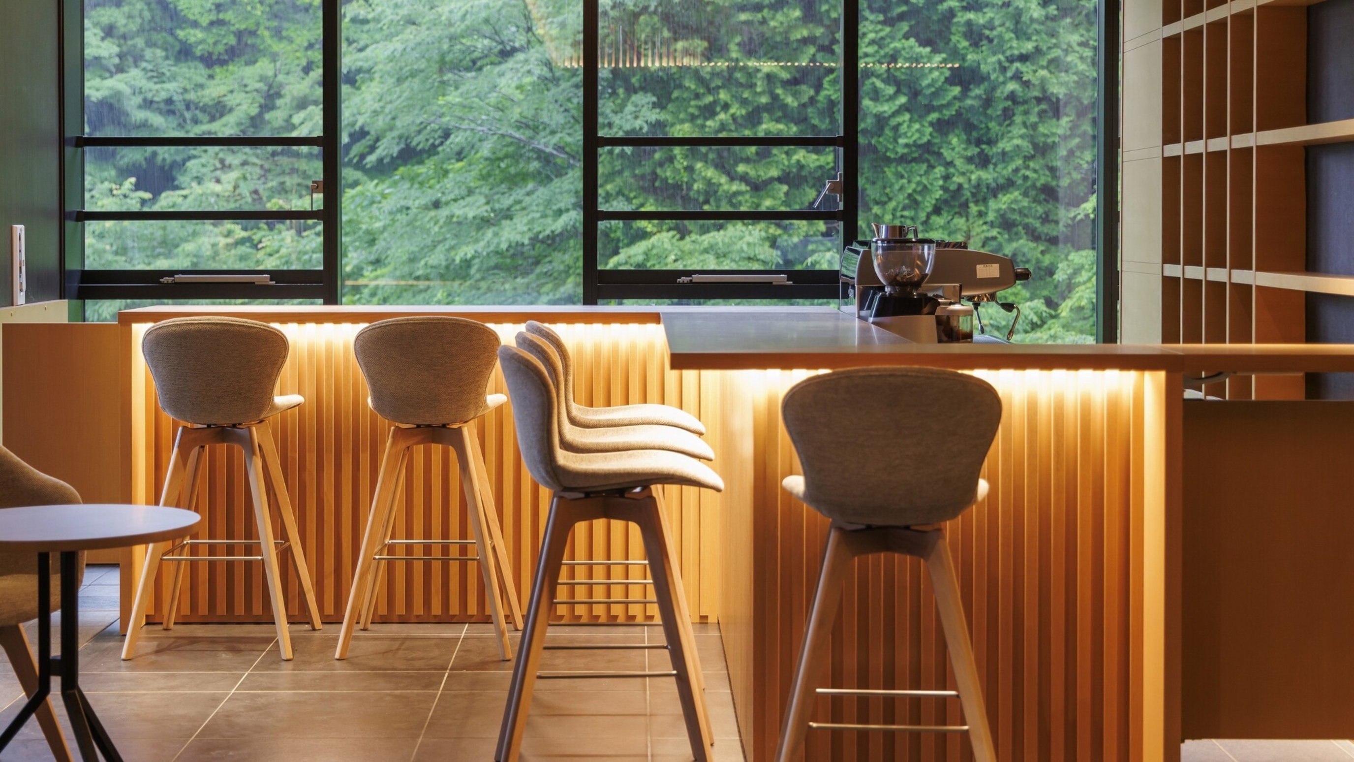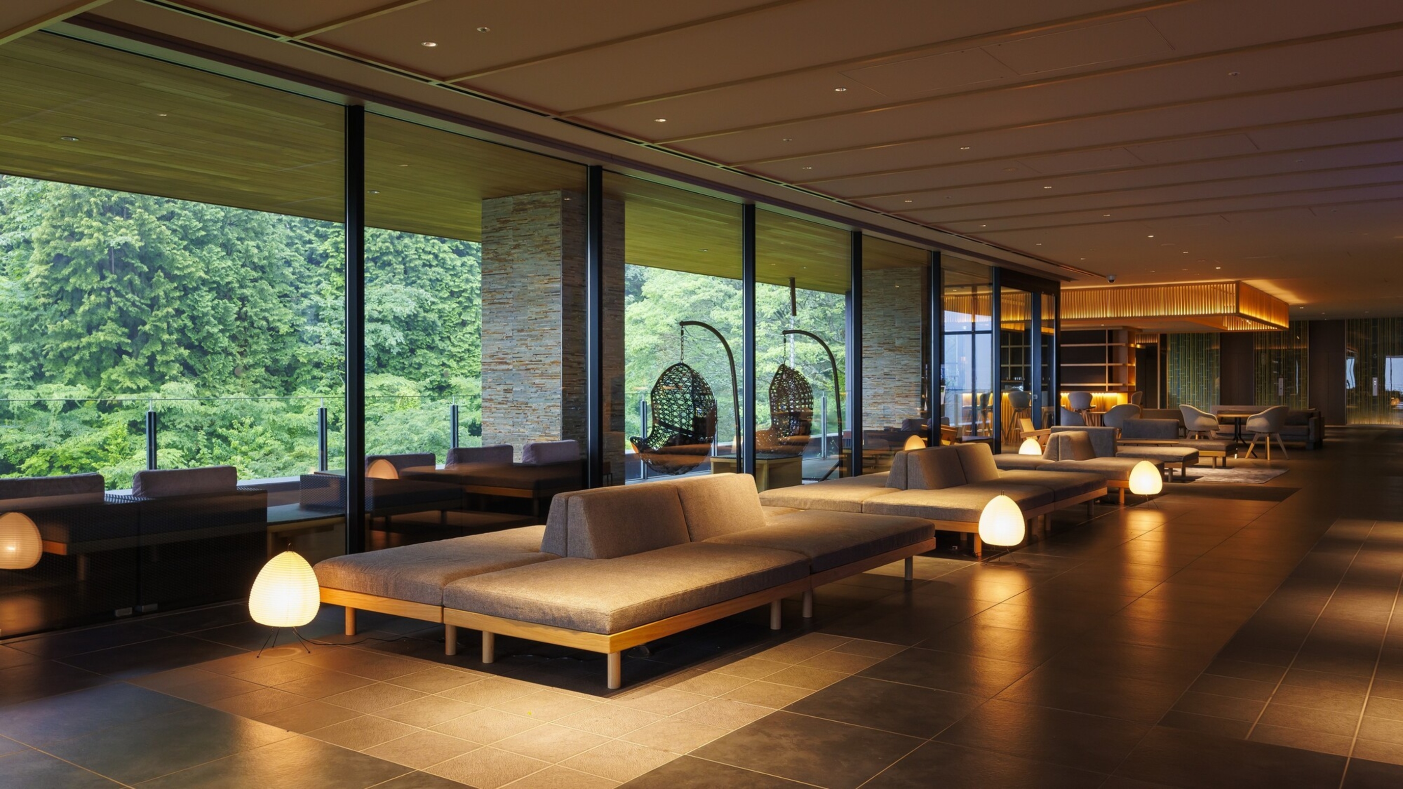 渓流沿いのロビーで食べることができますよ。