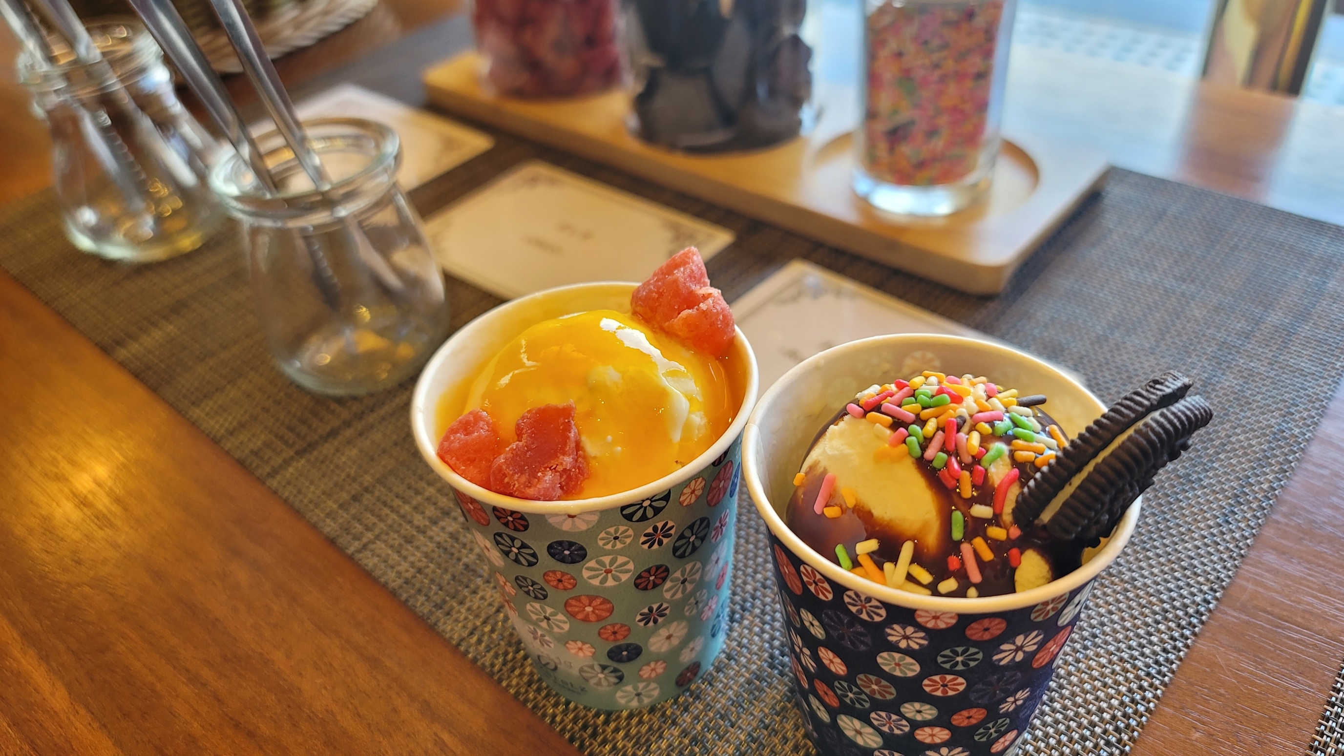 アイスクリームは15:00-18:00の間食べ放題で、アイスクリームに添えるトッピングもたくさんあります。