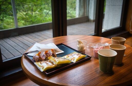 渓流沿いのロビーで食べることができますよ。