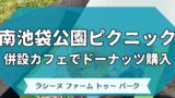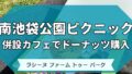 南池袋公園の併設カフェでドーナツ購入し、芝生ピクニックした様子もレポしています。