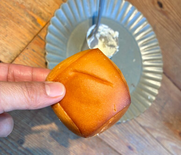 お目当てのワンハンドレットブレッドは自家製ホイップクリームとセットで届きました。