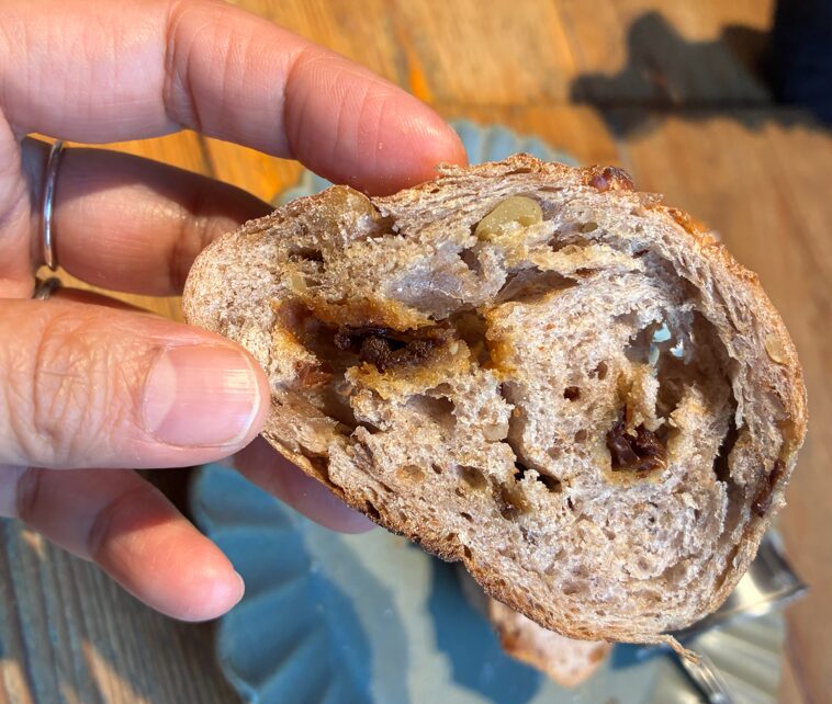 フワフワのパン生地に胡桃の食感が楽しく、じゅわっとレーズンの味が広がって美味しかったです。